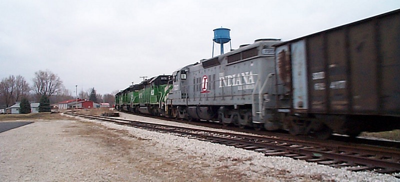 The northern section while small is never the less an important part of the Indiana Rail Road. Perhaps unremarkable in character it looks like any central or northern Indiana rail line with few curves, no high trestles, and no large bridges that are prominent in other sections of the line. Quaint Midwestern towns dot this section of the line, some small and only a small dot on the map, others where the railroad runs thru the center of town looking for all the world as if the railroad is main street. In addition at its northern end is the large Metropolitan city of Indianapolis, home to Senate Avenue Terminal and the corporate offices in a down town high rise. Due to the roller coaster profile of the west end because of its poor grading this is possibly the flattest and straightest portion of the line, and with its recently upgraded 40mph running in places trains move quickly often covering the distance from Morgantown to just south of Indianapolis in less then thirty minutes.