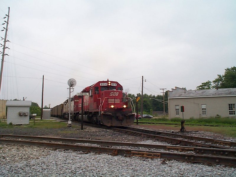 Moving onto Linton, we have another interchange, with the Chicago sub. This is another junction that has fallen in importance. It once was the primary interchange point between the Chicago Sub and the ex IC line, before the interchange at Dugger was rebuilt. It remains important however in that it retains the small yard on the Chicago sub and a small wye in the southwest corner of the automatic diamond. A siding and house track can be found on the IC line as well. Ocasionaly if the Midland sub is blocked, trains will back the wye and switch subdivisions here instead of using the Midland Sub.