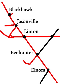 From Jasonville to Linton the INRD has installed signals for GCOR Rule 10 operations. Interlockings are at both ends of Hiawatha Yard, The Midland Sub junctions, and Linton.