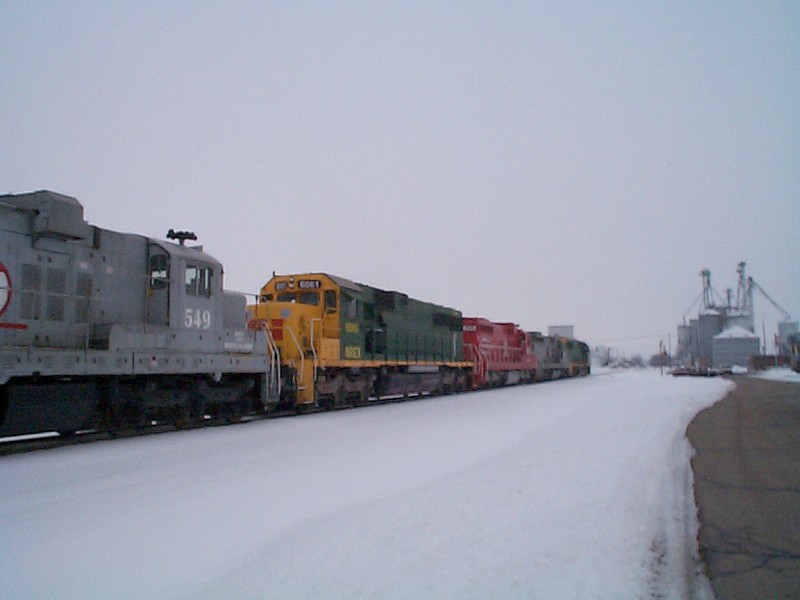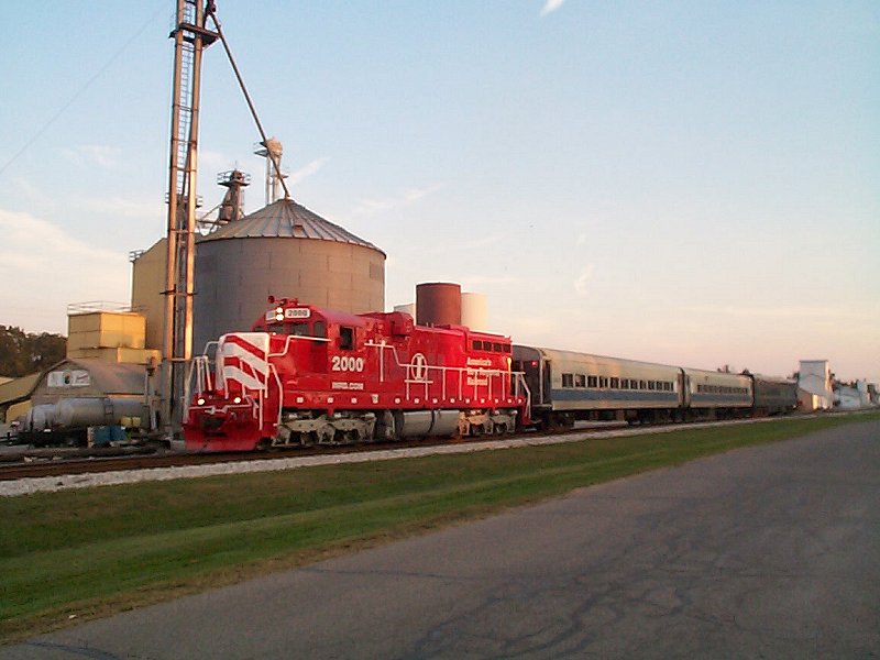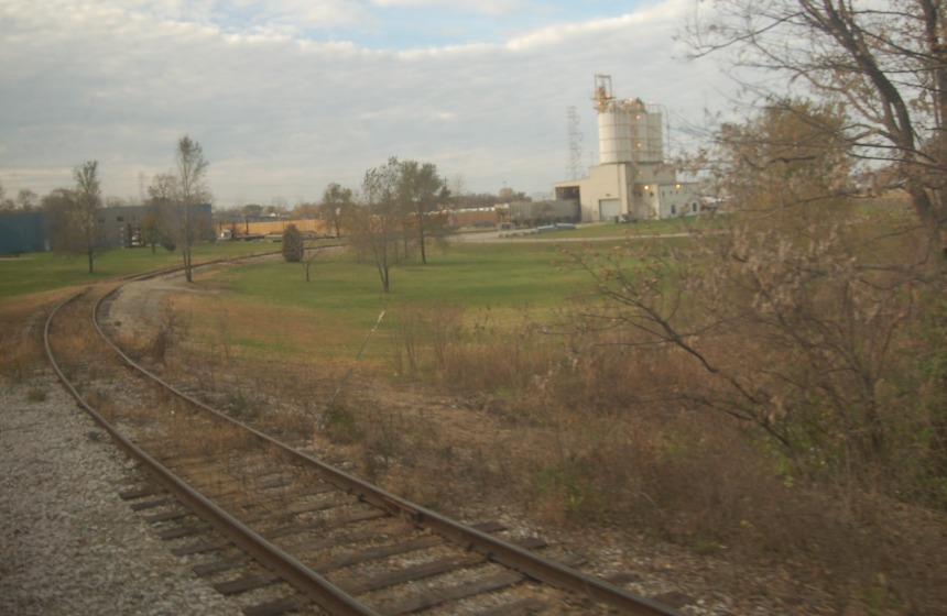 Moving south, we come to the curious town of Bargersville. It is a typical Midwestern town, with a grain elevator, fire station, post office, and of course the bar. The Indiana Rail Road occupies a prominent position, running thru the down town in an open area, like a main street made up of steel rails.